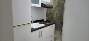 Alcoba 2: Cama King, se puede separa quedando dos camas sencillas, tv, led Smart tv, aire mini split, abanico de techo, baño entre alcobas, cocina americana con pantry y tres sillas tipo bar, nevera, estufa con horno a gas, horno microondas, licuadora, menaje para 4 personas, ollas, platos, cubiertos, etc. área de labores con su lavadero, lavadora y tendedero de ropas, sala con un sofá y un puf en cuero, agua caliente.